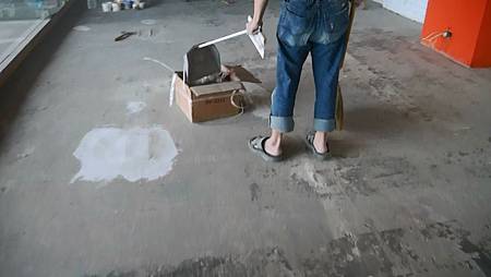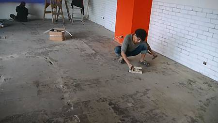 商業空間裝潢施工圖:須將髒物、突起的地方刮平,遇到小水泥塊,會用鐵鎚敲平