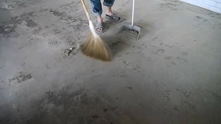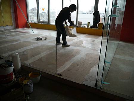 商業空間裝潢施工圖:清潔灰塵,日後才能上壓感膠黏貼塑膠地板