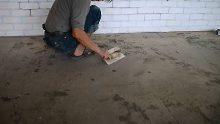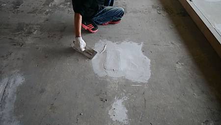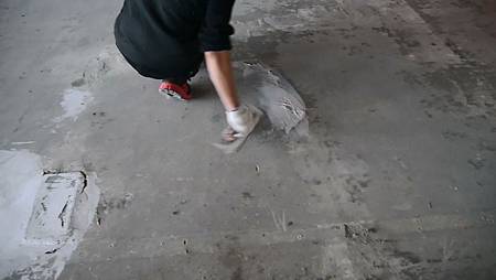 商業空間裝潢施工圖:針對凹洞批土,將地面儘可能批平。但是批土不可能批得非常平整,要很平整的話,還是要透過土水師傅下去用治平水泥再去整平