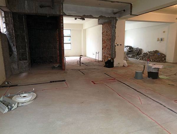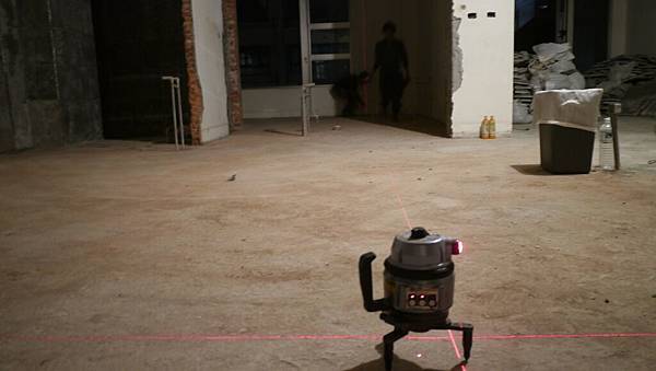 打除之後,施工之前,也需要做好基礎的放樣,後續施工才會方便,現場跟客人或是工班溝通也比較有效率。抓好基準點,利用雷射下去抓垂直跟水平線。