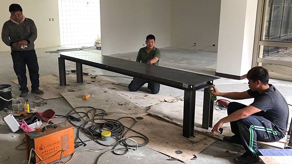 整個桌子就完成了。 這樣量身訂做的家具都滿昂貴的,主要是人工成本太高,鐵工四天工,木工也做了4天工。