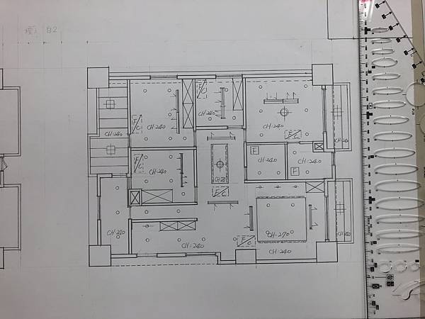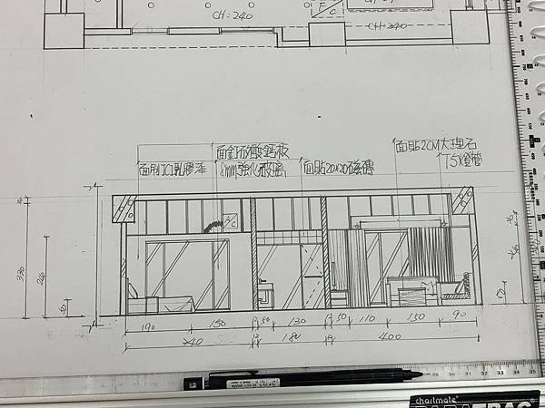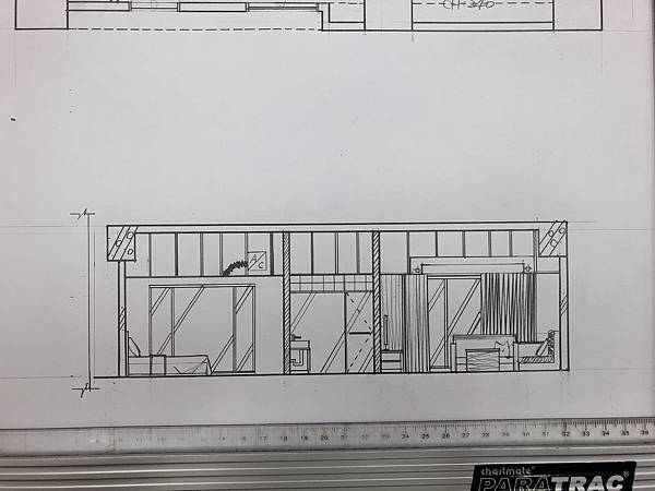 今天的份量有點重,為了因應考證照,未來的份量都會滿重的。今天畫材質表,兩點透、平面配置圖、天花板圖跟XY軸的剖面。下圖是兩點透,目前兩點透個人覺得相對上手許多了。