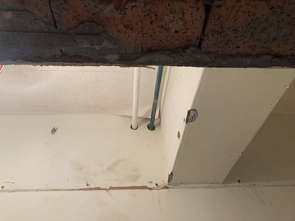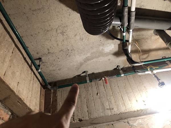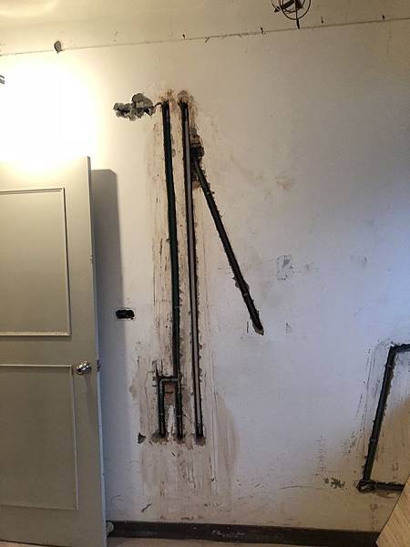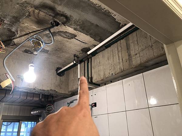 進入廚房後,水管在天花板上方穿過牆,走入隔壁的房間。