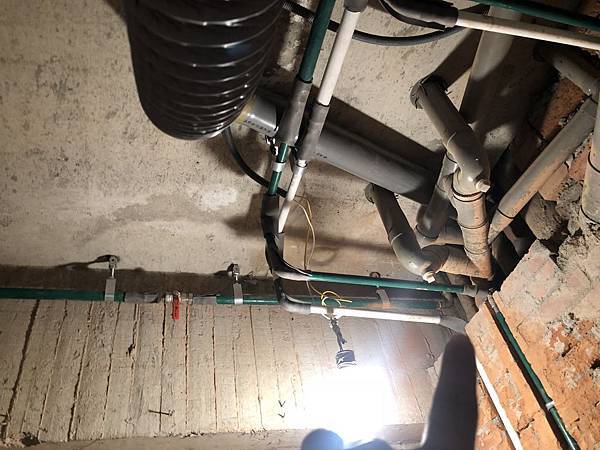這個配管方式用於水管,當然也適用於電管,但施作之前,還是要再三聲明,打鑿還是可能會傷到原本的磁磚,因此,只能說盡量了。 上圖是從幹管接出來要做冷熱水的不鏽鋼管,接著,我們看到水管走的路徑。