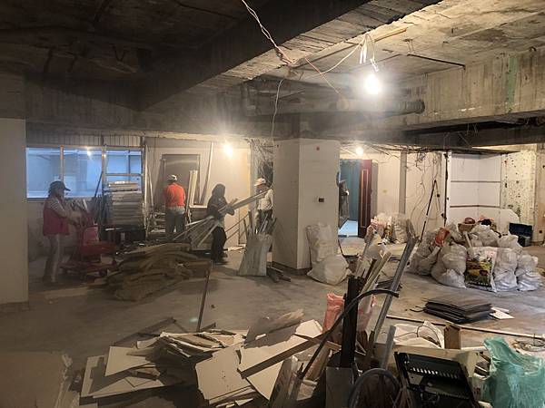 年前花兩天拆除清運跟做好臨時水電,等客人提供圖面,在後續施工的案例。 下圖是打地板的照片