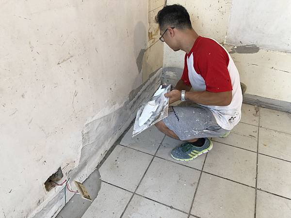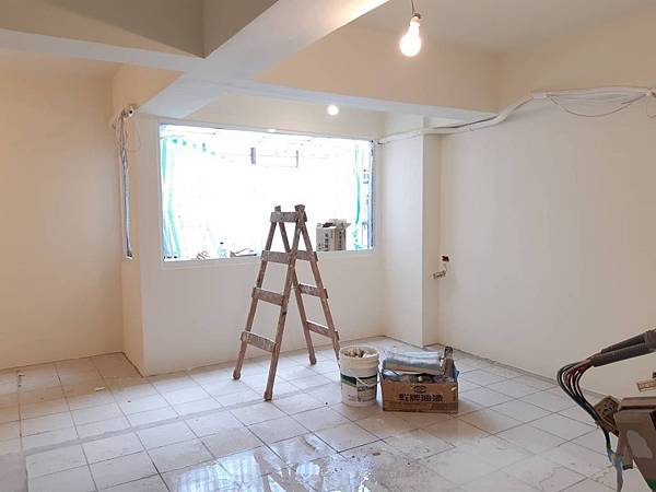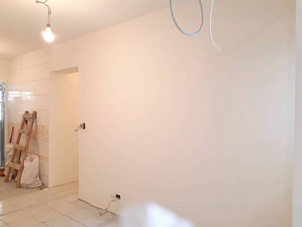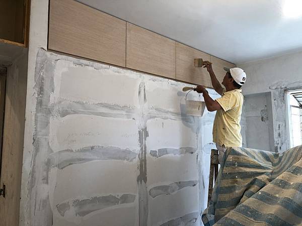 木工結束後,進入油漆的階段了。 批土跟研磨