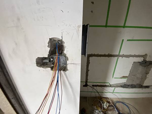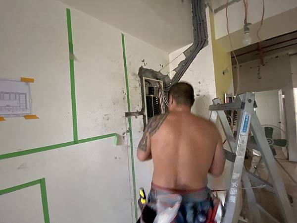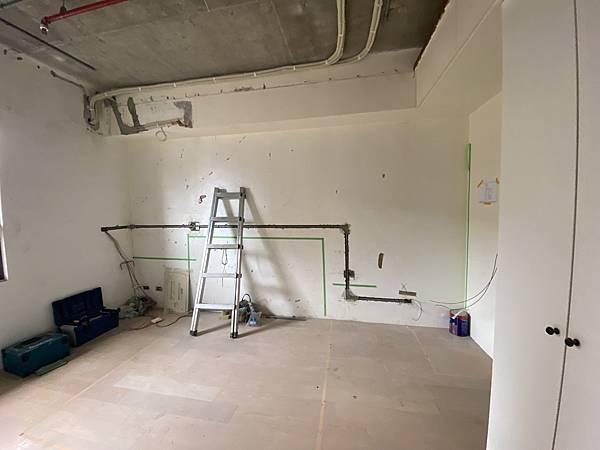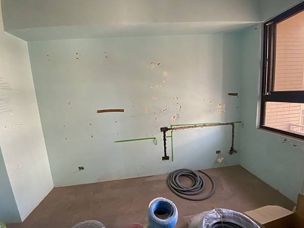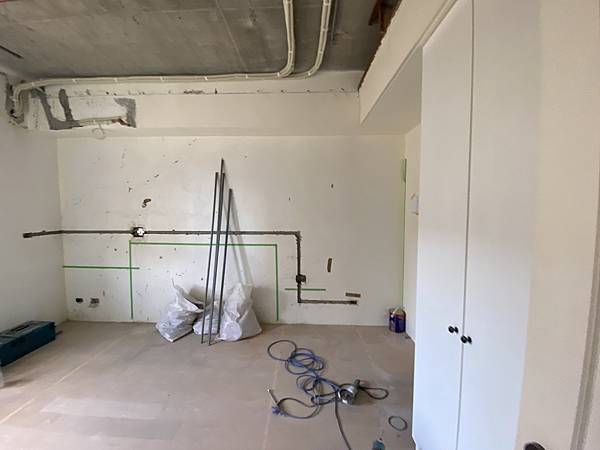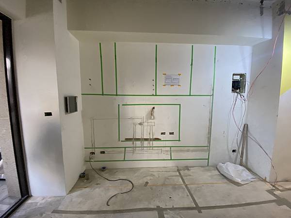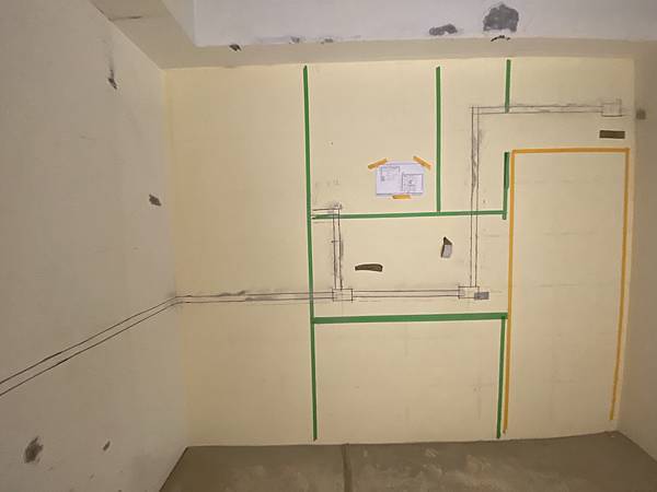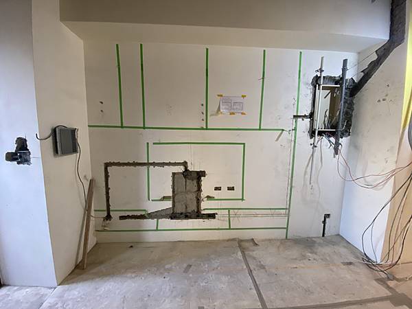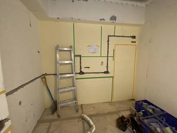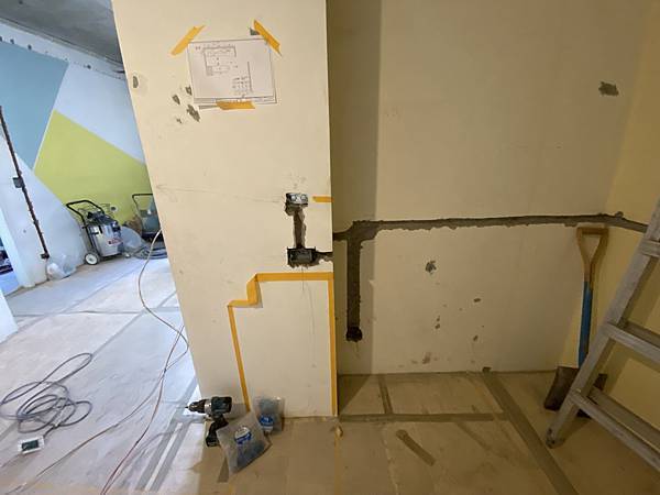 打鑿管溝、埋設鐵盒。下圖:客廳區 下圖:餐廳區