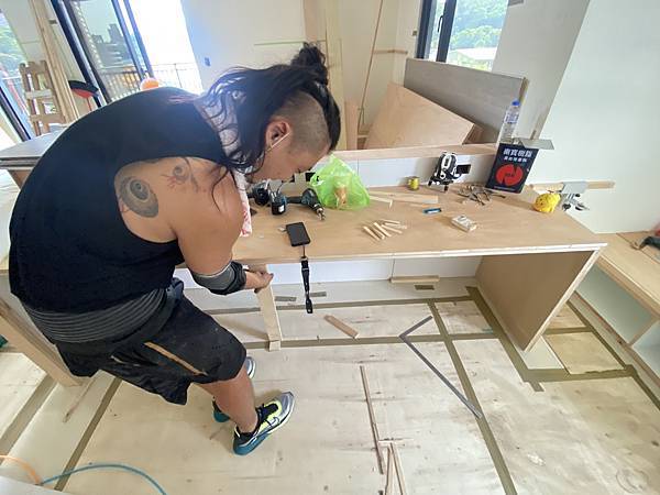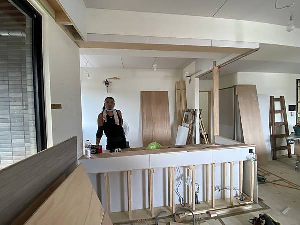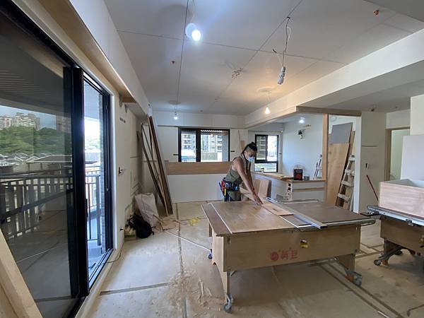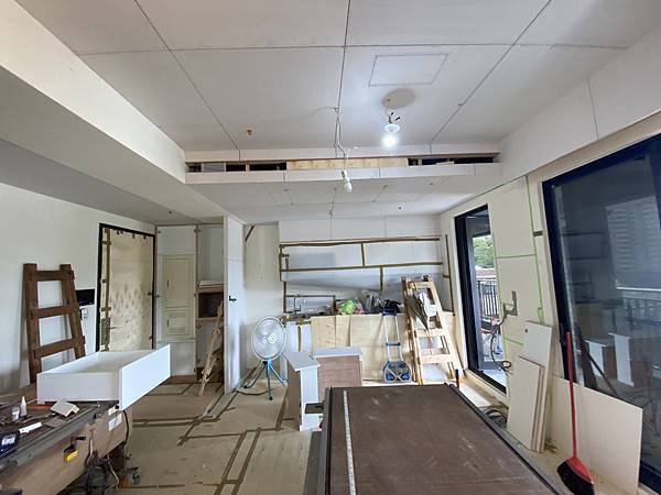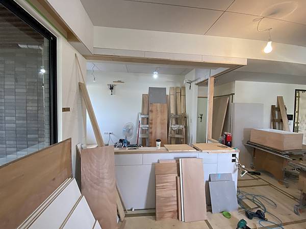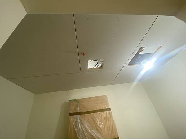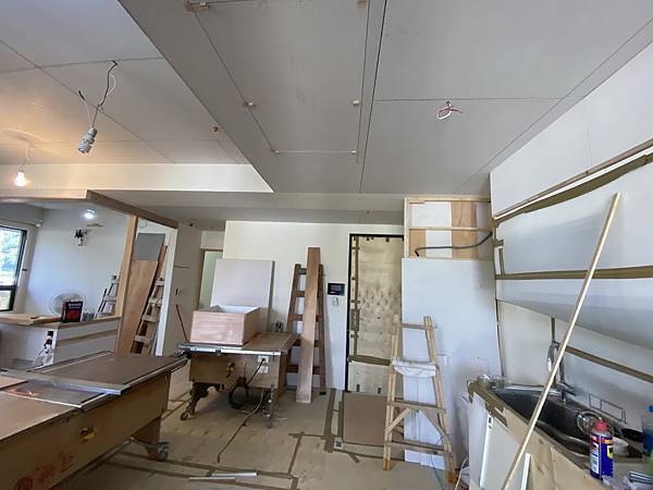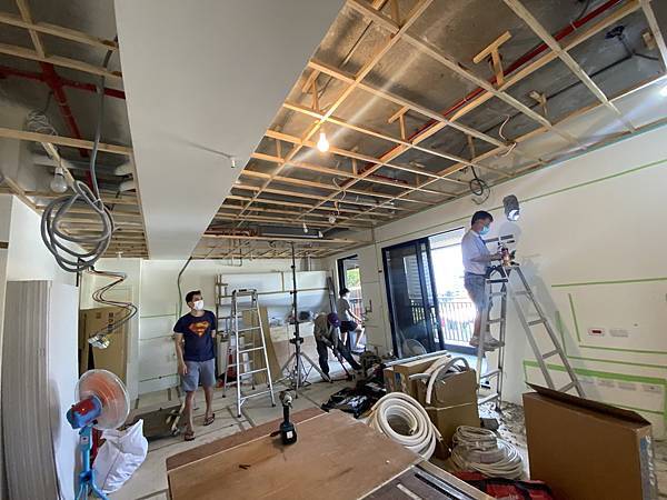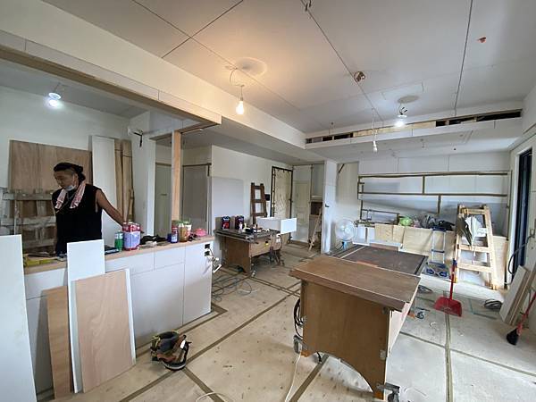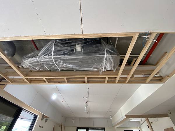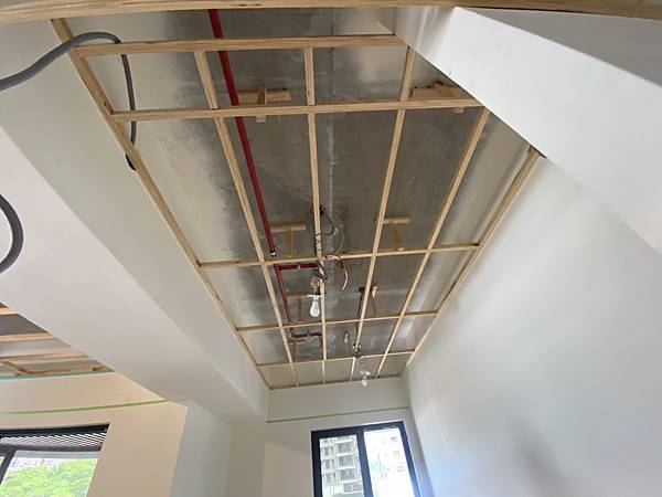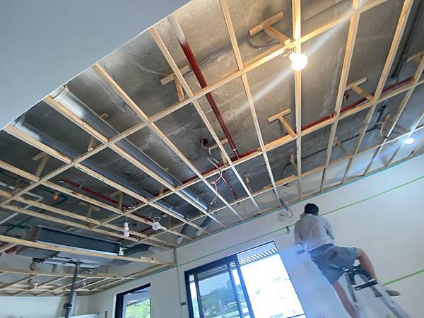木工先下角材,後續水電好放線路跟改消防灑水頭的高度。 也方便冷氣來放管線,跟吊掛隱藏式的室內機。