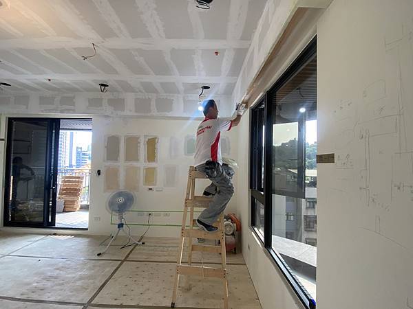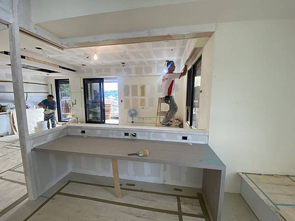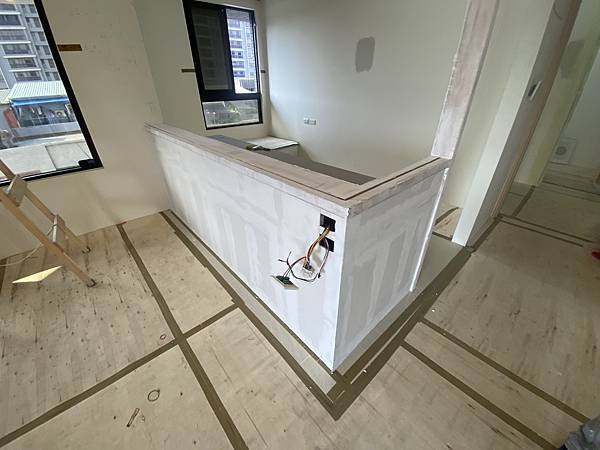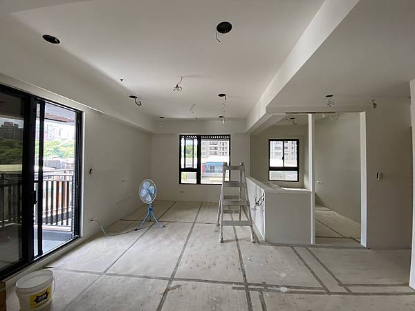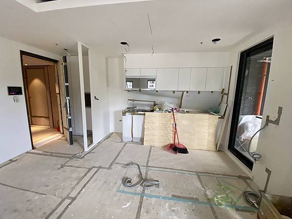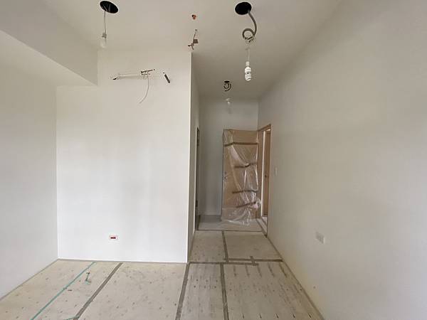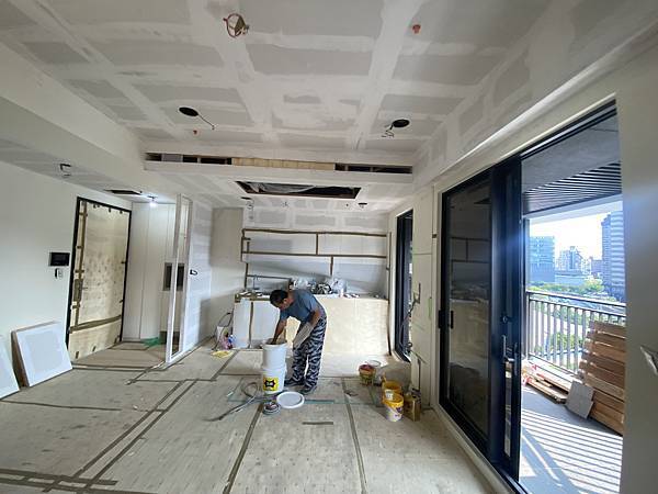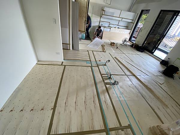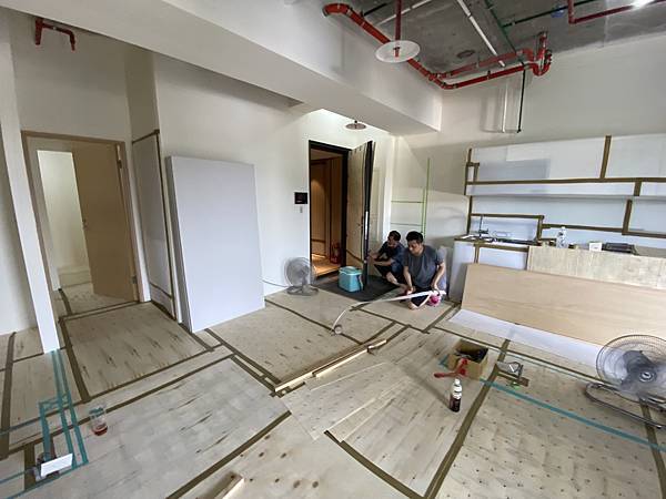 台北市的新屋裝潢。上圖是鋪設保護板的狀況,地板是拋光石英磚,要做好雙層保護,避免損傷。