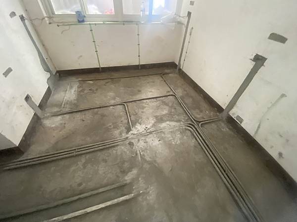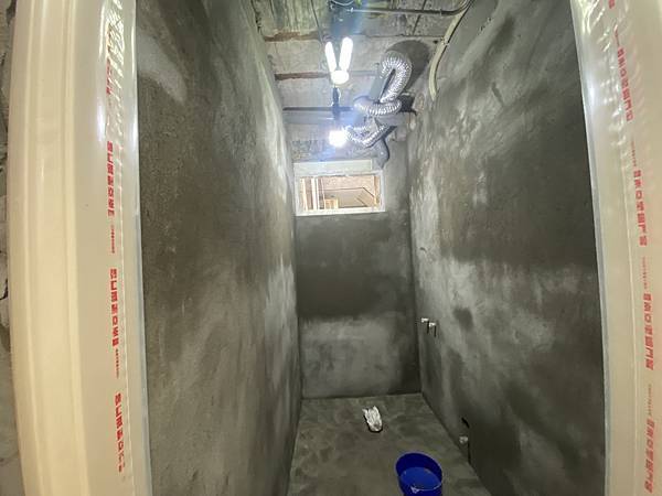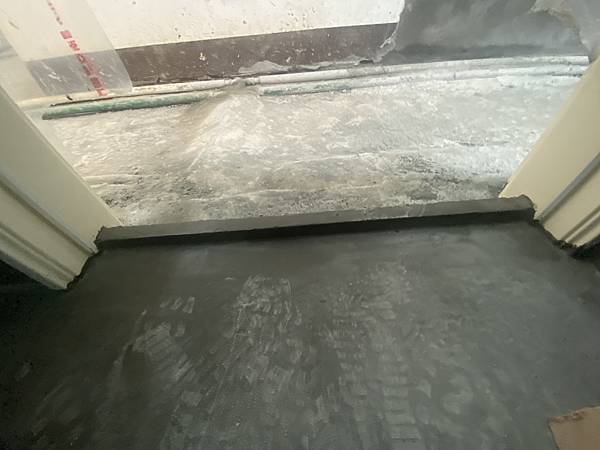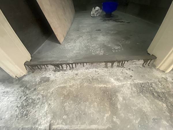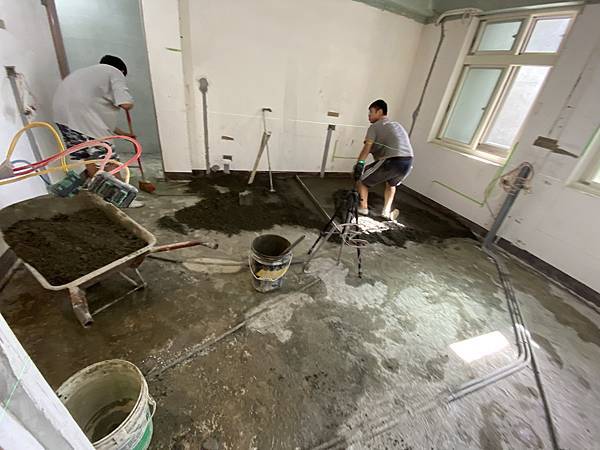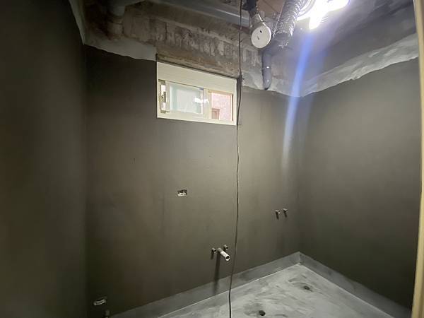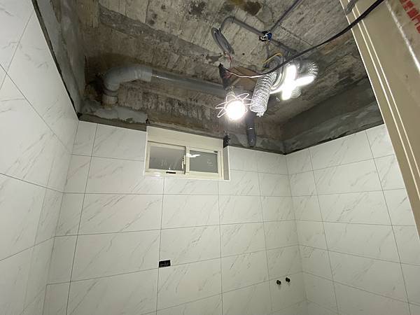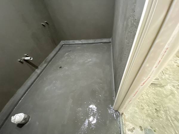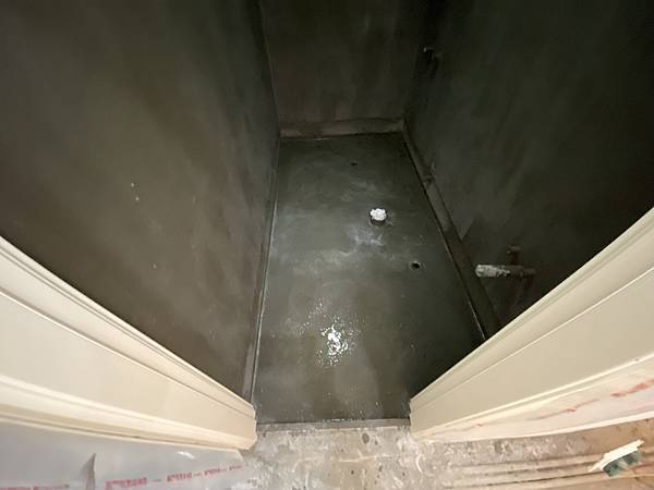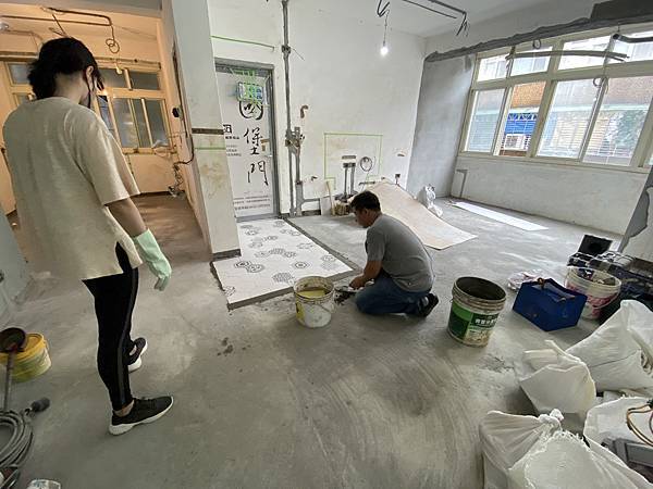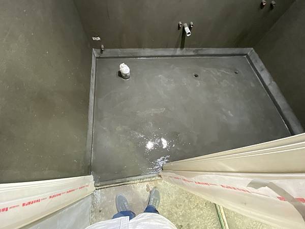 這邊要強調一下,因為客人希望地板越低越好,因此,地板排水沒有變動。 所以兩個排水孔不見得可以在四片磁磚的交接處,這時候會需要取捨,一般來說,以濕區排水為考量下去抓。 第二個要說的是,因為人造石分割的關係,乾溼區的磁磚大小,無法連續整磚,這是也是常見要先告知的部分,避免爭議。