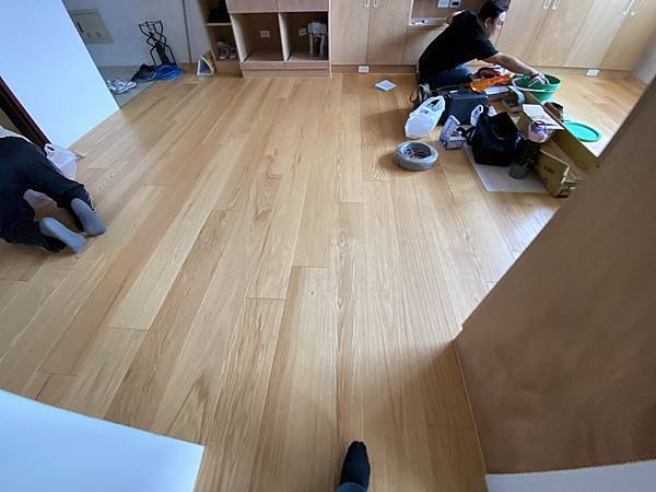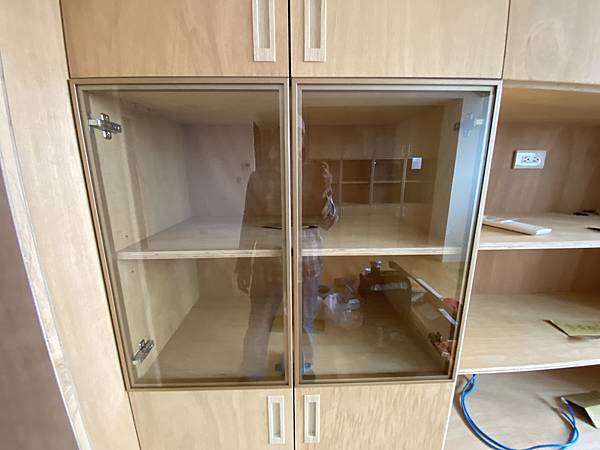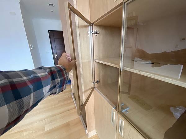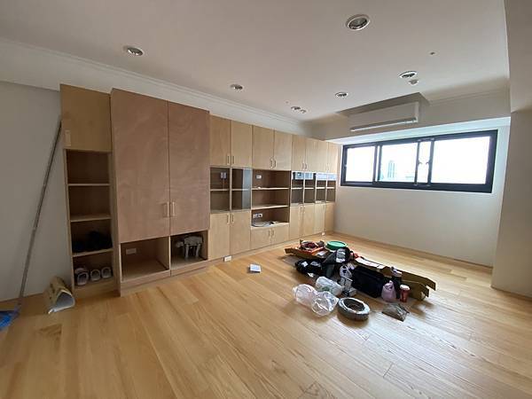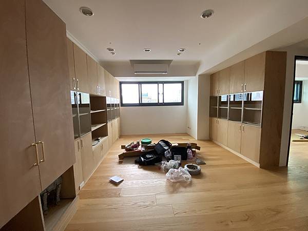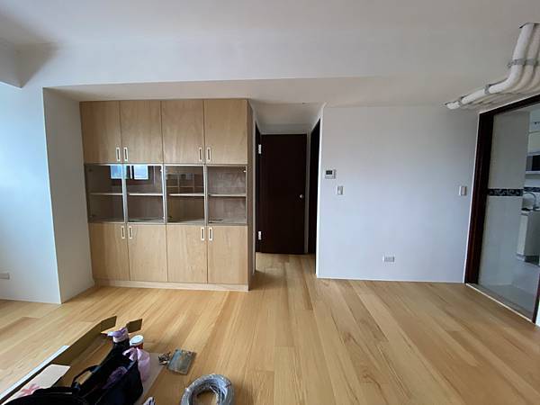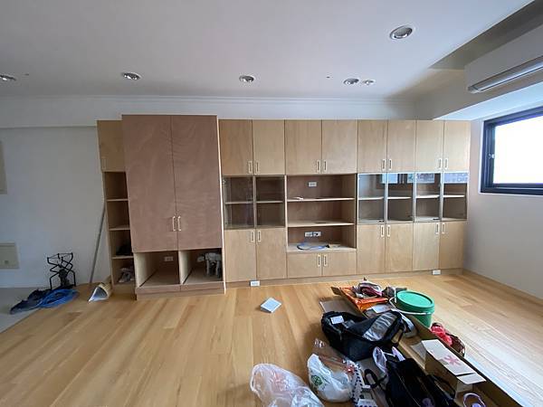 客廳的鞋櫃、收納櫃。 這個案例比較特殊,客人採用零甲醛的茂矽亞產品,表面沒有做貼皮,直接原色。 地板也是找茂矽亞來施工。 材料成本相當高,是我們一般木工材料的3-4倍。
