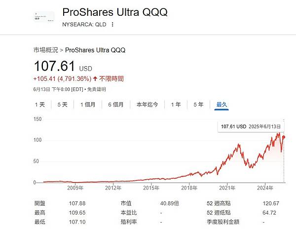 二、美股兩倍槓桿ULPIX QLD :他的趨勢向上,但似乎沒有那麼向上。 回檔卻是相當驚人。