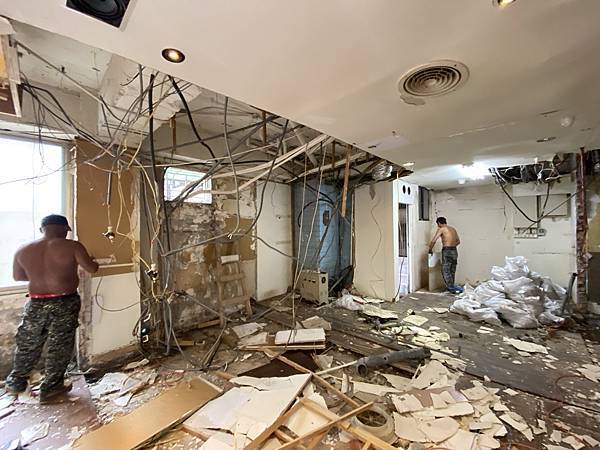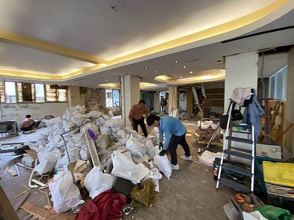 辦公室的裝修案,確認好之後,我們先作拆除清運的工序。拆除現場的所有木作,天花板、木櫃子、地板。 多個租客使用過,所以疊加了很多線路,後續要花不少時間整理。
