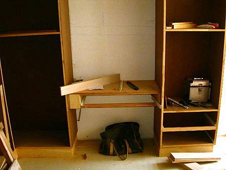 解決了水電工程與天花板,終於進入的重頭戲,木作櫃的製作了;這是主要的需求有衣櫃、書櫃、書桌與收納櫃等,以下是整體的製作過程。