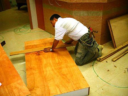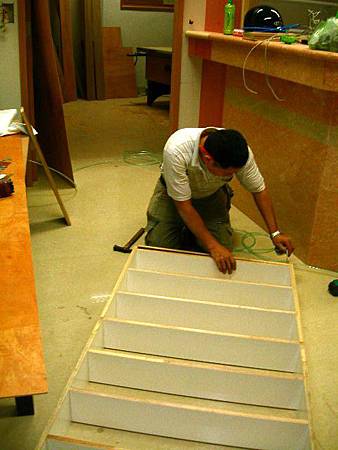 診所裝潢過程圖:移動置物櫃的施作,釘後背板