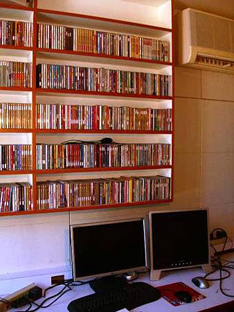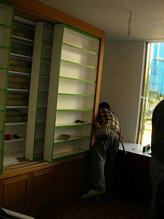 診所裝潢完成圖:美美的置物櫃,擺滿了錄音帶囉!綠色的櫃子是可以滑動的