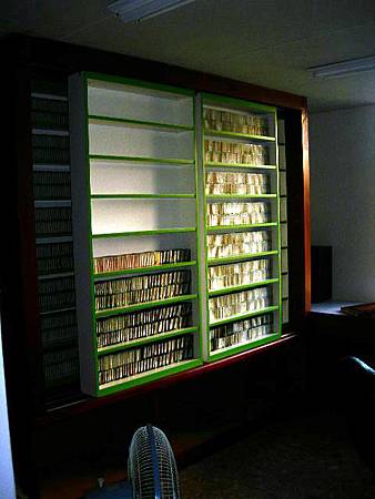 下圖中的大型櫃體,內崁多個移動置物櫃,是用來放錄音帶的